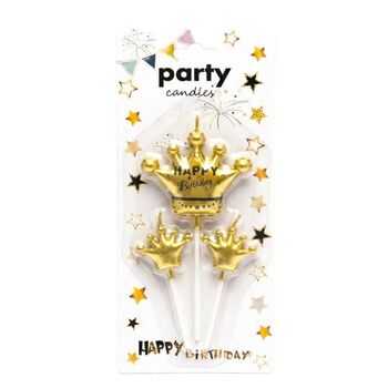 Happy Birthday Gold Taçlı 3 lü Mum Set