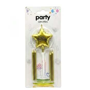 Paket İçerisinde 1 Adet Happy Birthday Yazılı Yıldız Mum 12 cm Boyutunda 4 Adet 8cm Boyutunda Gümüş Mum Bulunmnaktadır.