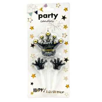 Paket İçerisinde 1 Adet Happy Birthday Yazılı Taçlı Mum 15 cm Boyutunda 2 Adet 9 cm Boyutunda Taçlı Mum Bulunmnaktadır.