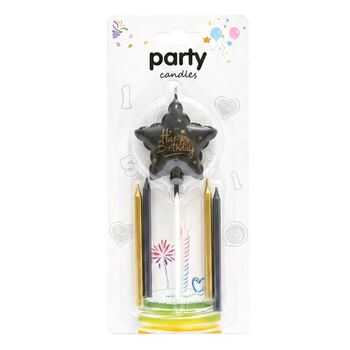 Paket İçerisinde 1 Adet Happy Birthday Yazılı Yıldız Mum 12 cm Boyutunda 4 Adet 8cm Boyutunda Gümüş Mum Bulunmnaktadır.