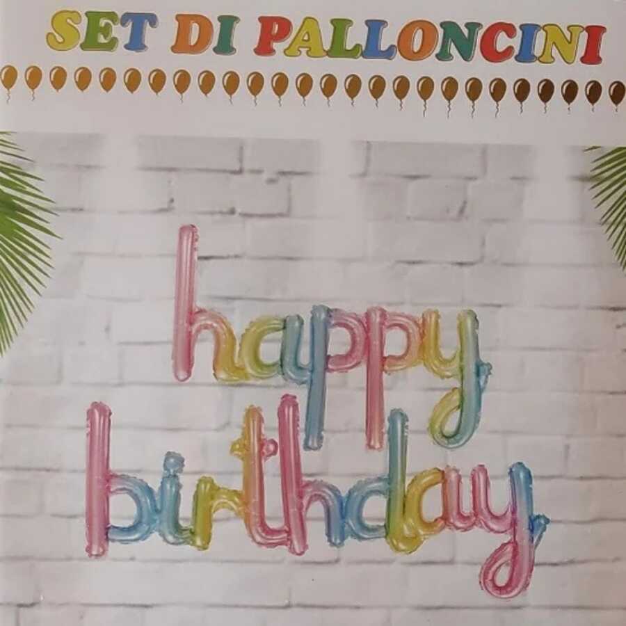 40 cm yüksekliğinde Happy Birthday harflerinden oluşan el yazısı şeklinde folyo balonlar.