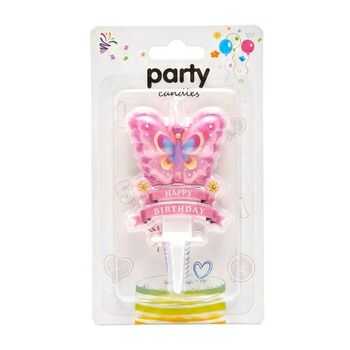 Pembe Kelebek Happy Birthday Çiçekli Mum 1 Adet