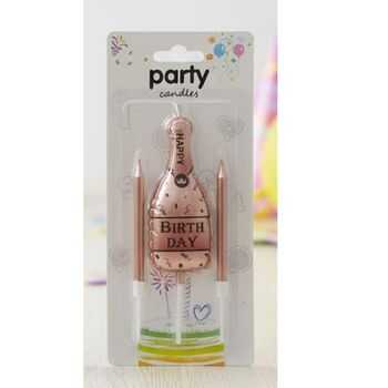 Rose Gold Happy Birthday Şampanya Şişesi Şekilli Mum