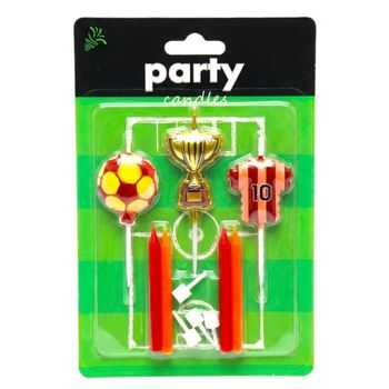 Paket İçerisinde 1 Adet Kupa Şekilli Mum 4x3 cm Boyutunda 1 Adet Futbol topu Şekilli Mum 3x3 cm Boyutunda 1  Adet Forma Şekilli Mum 4x3 cm 4 Adet 6 cm Boyutunda Pasta Mumu Bulunmaktadır.