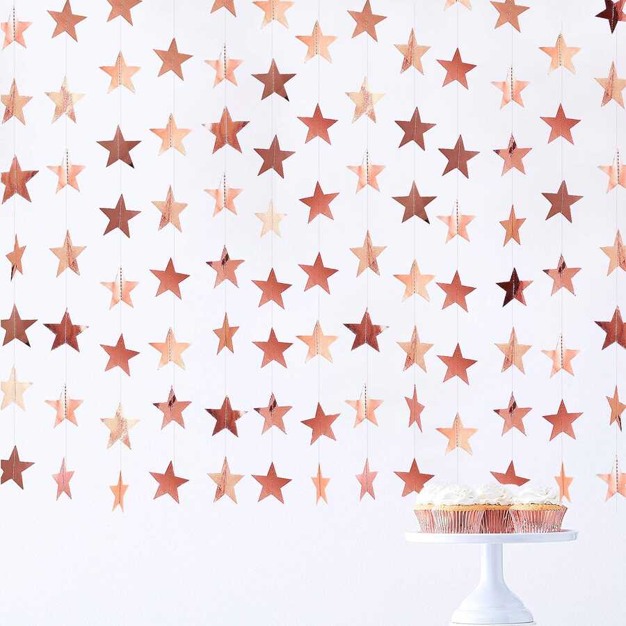 Paket içerisinde 30 adet 4 metre uzunluğunda boyutu 7 cm olan birbirine iple bağlı sarkıt rose gold renk yıldız süs vardır